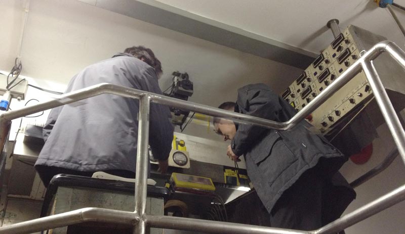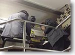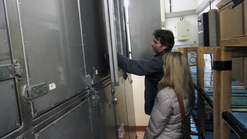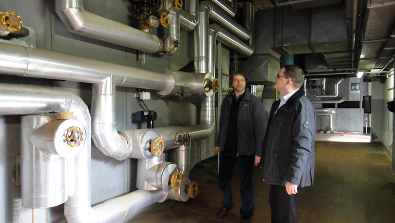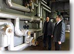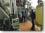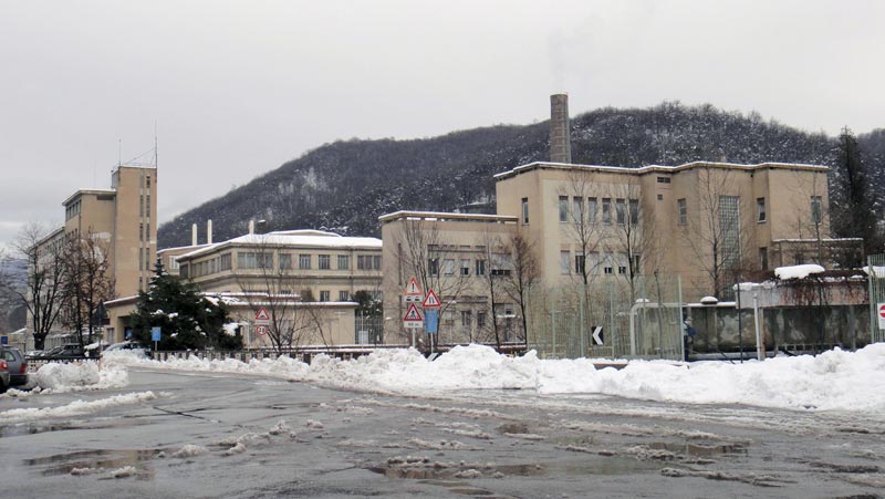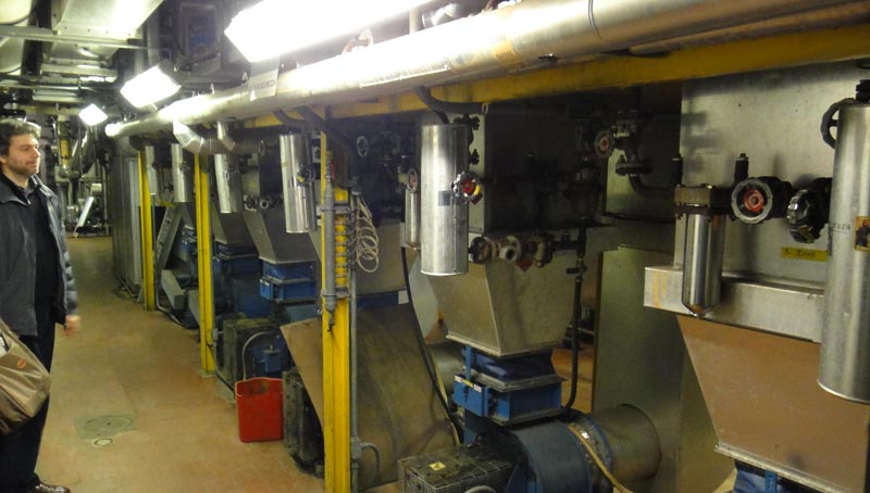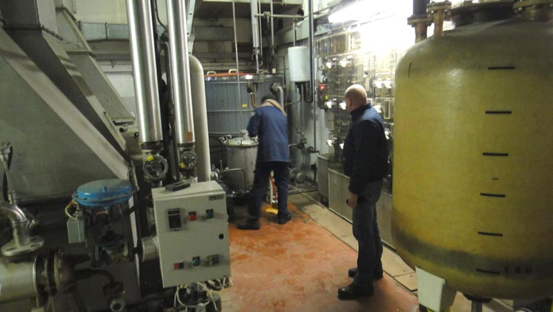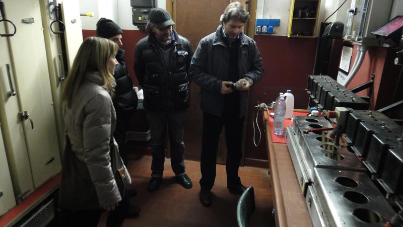 Das Ferrania Forschungsgebäude profitierte auch hier in früheren Jahren von der vorhandenen Infrastruktur einer monströsen Filmfabrik - die nun abgeschaltet ist. Keine Kälte, keine Wärme - kein Dampf! Zwar wird auf dem Gelände das ehemalige Kraftwerk noch temporär betrieben und liefert in dieser Zeit auch Dampf an FilmFerrania. Aber zum einen eben nur temporär und zum anderen zu Konditionen, die uns das soeben benutzte Bild des "Kohleschippens" in einem anderen Kontext - und rein sinnbildlich verwenden lassen. Auch ist der Energieverlust über die vorhandenen Dampfleitungen -vom Kraftwerk bis zum FilmFerrania Gebäude- so groß, dass unter heutigen Gesichtspunkten eines energie- und kostenbewussten Betriebes eine Dampferzeugung vor Ort unumgänglich wird. Hier gucken gerade Marco Pagni und Daniel Wittner in die Röhre(n).
