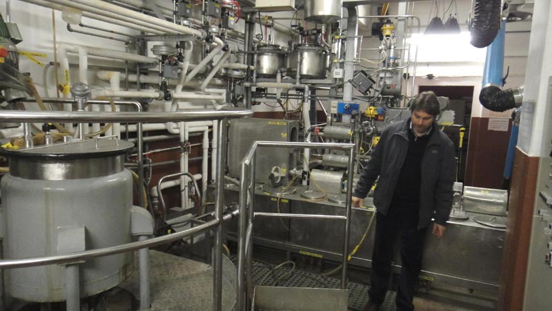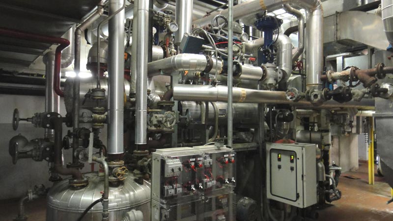 Nach der Wasseraufbereitung (in Arbeit) und der Kühlung (erledigt!) fehlt aber noch die Wärme. Dampf ist hier die treibende Kraft. Erforderlich für so banale Dinge wie die Beheizung der Räume, aber auch für das "Kochen" einer ganz speziellen Suppe - genannt Filmemulsion. Sowie -natürlich- für unzählige andere technische Abläufe. Hier muss sich FilmFerrania noch unabhängig machen durch das Beschaffen eines eigenen Dampferzeugers. Nein, das ist nicht so ein schwarzer Kessel, wo man unten Kohle reinschippt. Aber so ähnlich. In modern funktioniert es heute zumeist mit Öl oder Gas - natürlich computer controlled.