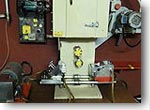 Das ist eine Gießmaschine. Nun gut, eine kleine. Mit dieser Einrichtung werden die Emulsionsproben auf 110mm breite und ca. 2m lange Filmbahnen aufgebracht. Tauchbegussverfahren mit beheiztem Emulsionstauchtrog. Hier wird jede einzelne Schicht des neuen Filmmaterials getestet, bis alle Parameter stimmen. Erst dann wird auf der großen Gießmaschine gearbeitet. Diese Schleifengüsse können -nach dem Trocknen- genau analysiert werden. Dafür stehen mehrere vollausgestattete Laboratorien der Qualitätssicherung zur Verfügung.
