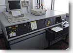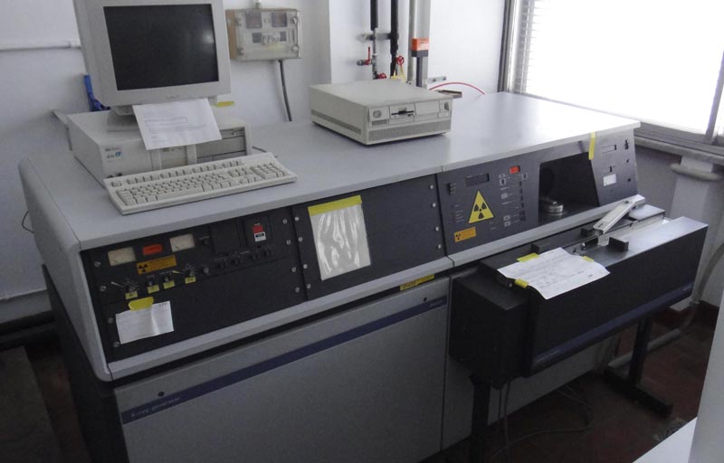 Am Ende der Reise durch unzählige Emulsionsküchen und die Flucht der Dunkelräume zur Probengewinnung bleibt noch der Blick in einen der Analyseräume. Mit diesem Röntgenspektrometer kann z.B. die exakte Verteilung der Silbersalze in einer Emulsion bestimmt werden. Es gibt weltweit von diesem Gerät -mit der erforderlichen fototechnischen Ausstattung- nur noch sehr wenige einsatzbereite Exemplare. Dieses ist eines davon. Weder Ersatzteile noch Service sind verfügbar. Daher wird es gehegt und gepflegt und bewohnt derzeit den einzigen dauerbeheizten Raum (und wird täglich gestreichelt).