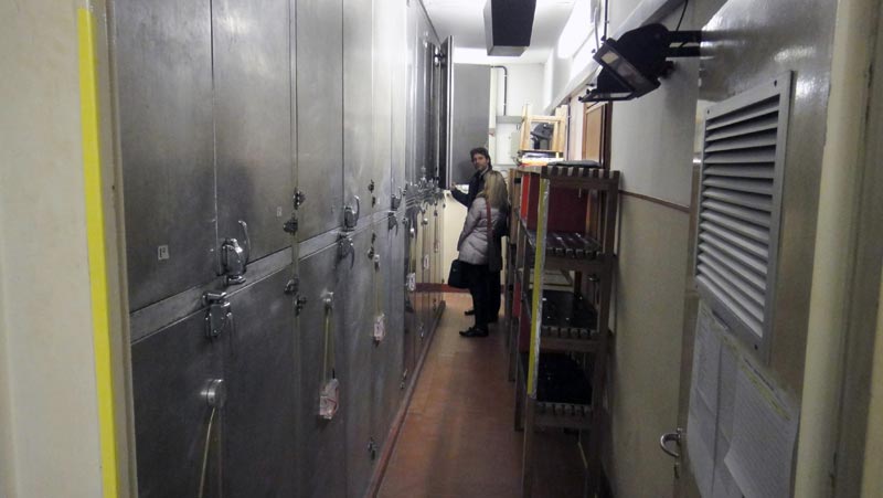 Ein Traum für jeden Techniker, der Anlagen in Betrieb nehmen darf, die sich in großen Teilen über die Jahre erhalten haben, als wären sie gerade eben nach der letzten Schicht erst abgeschaltet worden. Dieses Vorhandensein einer nahezu grenzenlosen technischen Ausstattung war der vorherrschende Eindruck beim Blick in die unzähligen Hallen und Räume. Dieses Bild zeigt das sog. LRF Building, den Sitz der neuen FilmFerrania. Es folgen nun einige kommentierte Fotoimpressionen von unserem Besuch am 31.01.2014.