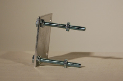 | 9. Thread one small nut on each front bolt and position left of the Support location.