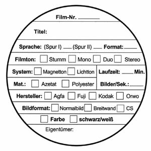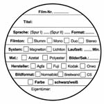 Neutral-weiße Aufkleber, für alle Filmdosen, rund, selbstklebend und mit Schreibmaschine/Drucker oder von Hand beschriftbar.