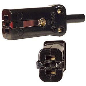 Haben Sie auch schon einmal ein schönes älteres Gerät erworben, aber kein Netzkabel dazu bekommen? Oder ist Ihnen für ein älteres Filmgerät das Anschlusskabel verlorengegangen oder die Anschluss-Buchse zerbrochen? Das ist nun kein Problem mehr! Wir haben für Sie das Vorgängermodell der sog. "Kaltgeräte"-Kupplung vorrätig. Es handelt sich um die zweipolige Version für flache Kontaktstifte mit aussenliegenden Erdungsfahnen, die für die meisten in den Geräten integrierten Einbaustecker passt. Kupplung, schwarz m. Knickschutztülle.