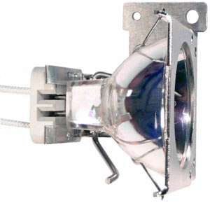 Für Kaltlichtspiegel-Halogenlampe 24V/250W (ELC) und 24V/200W (ESC und EJL). Komplette Lampenfassung mit Lampenhalterung. Solider Keramik-Kontaktblock mit Hitzeschild. Stabile Lampenkontakte, zweifach gefedert für guten Kontakt (geringer Übergangswiderstand). Doppelt gegen Hitze geschützte Zuleitung (Silikonkabel mit Gewebemantel, ca. 110mm). Lampen Auswurf-Bügel. Belastbare und langlebige Bauweise. Sonderanfertigung mit Montageflansch passend für ELMO GS-1200. Ohne Leuchtmittel. Kann einfach gegen die vorhandene, alte Lampenfassung/Halterung ausgetauscht werden.